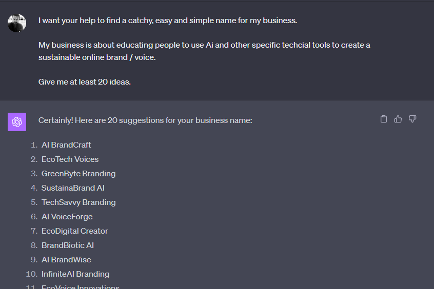 Your business name is your first impression. Chat GPT can help brainstorm names that stick.