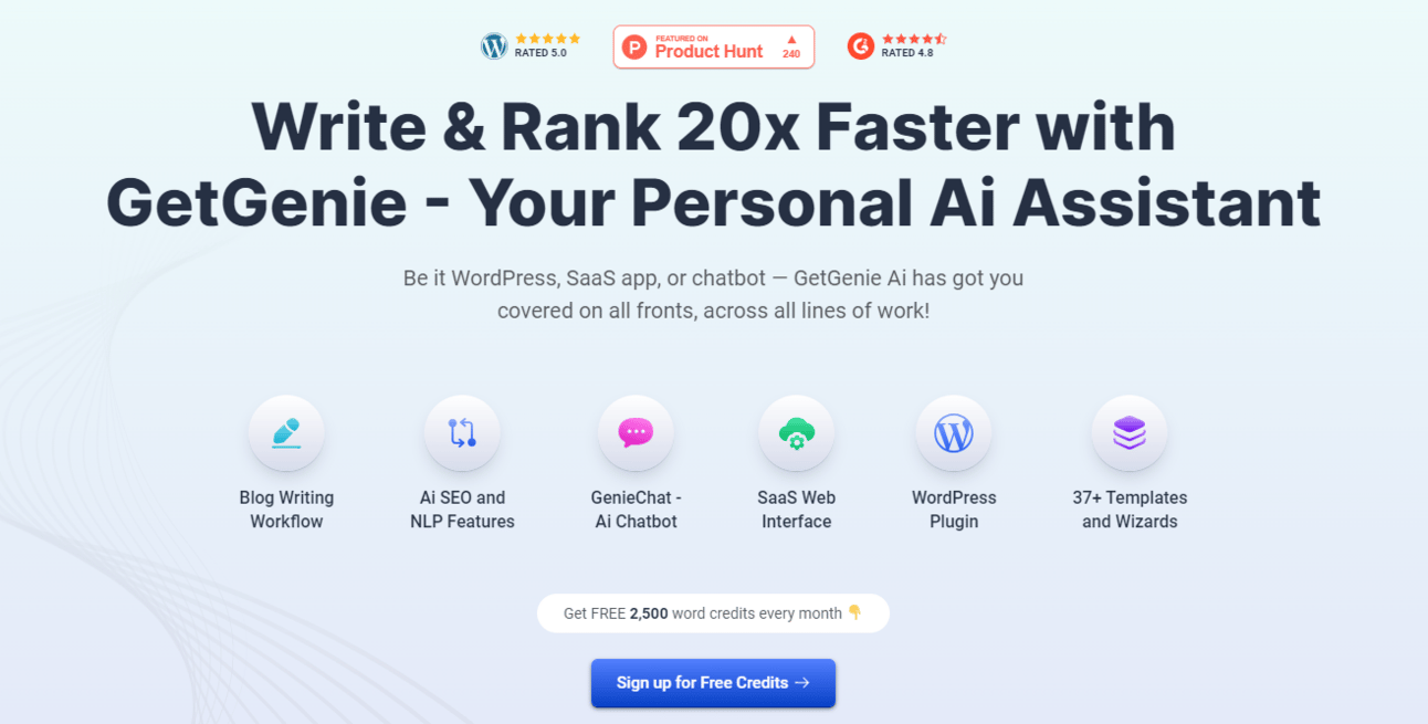 Whether you're using it as a WordPress plugin or a SaaS solution for your web browser, GetGenie will help you craft high-quality content effortlessly.
