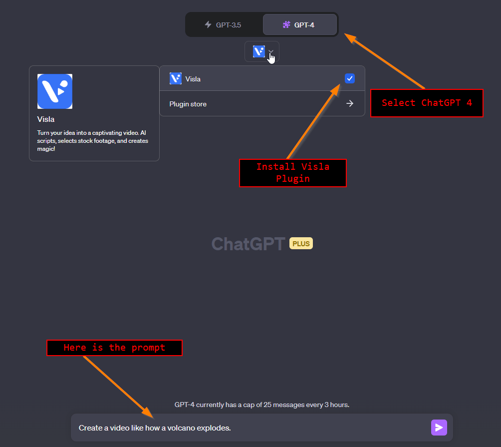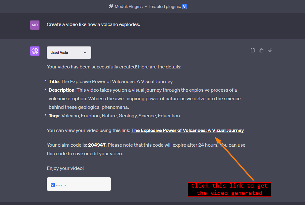 ChatGPT Visla Plugin will give a link to get the video.