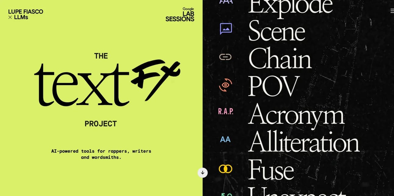 Google worked with artist Lupe Fiasco to design TextFX, drawing inspiration from his lyrical techniques.