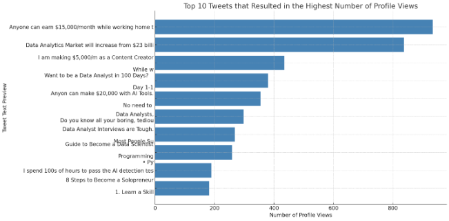 "Present a bar graph illustrating the tweets that resulted in the highest number of profile views.”