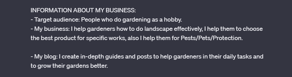 **there should be at least 7 Cornerstone Pages. (each cluster of keywords in a seprate table)Here is how I filled in the information about a gardening website: